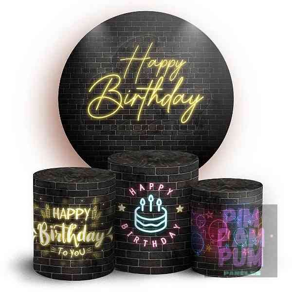 Kit de Panel Redondo sublimado y Fundas para Mesas – Happy birthday