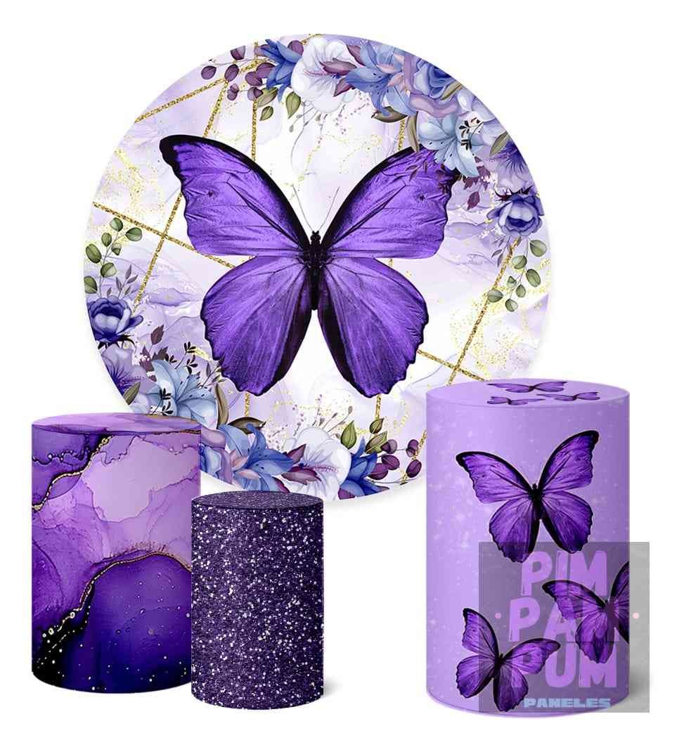Kit de Panel Redondo sublimado y Fundas para Mesas – MARIPOSAS – Cod. A5563