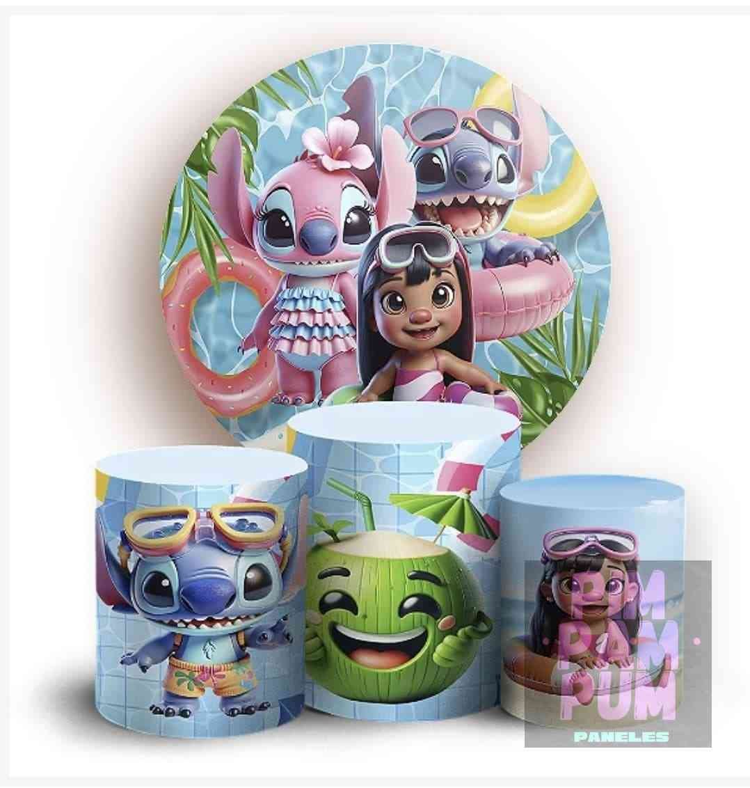 Kit de Panel Redondo y Fundas de Mesa Sublimadas de LILO y STITCH